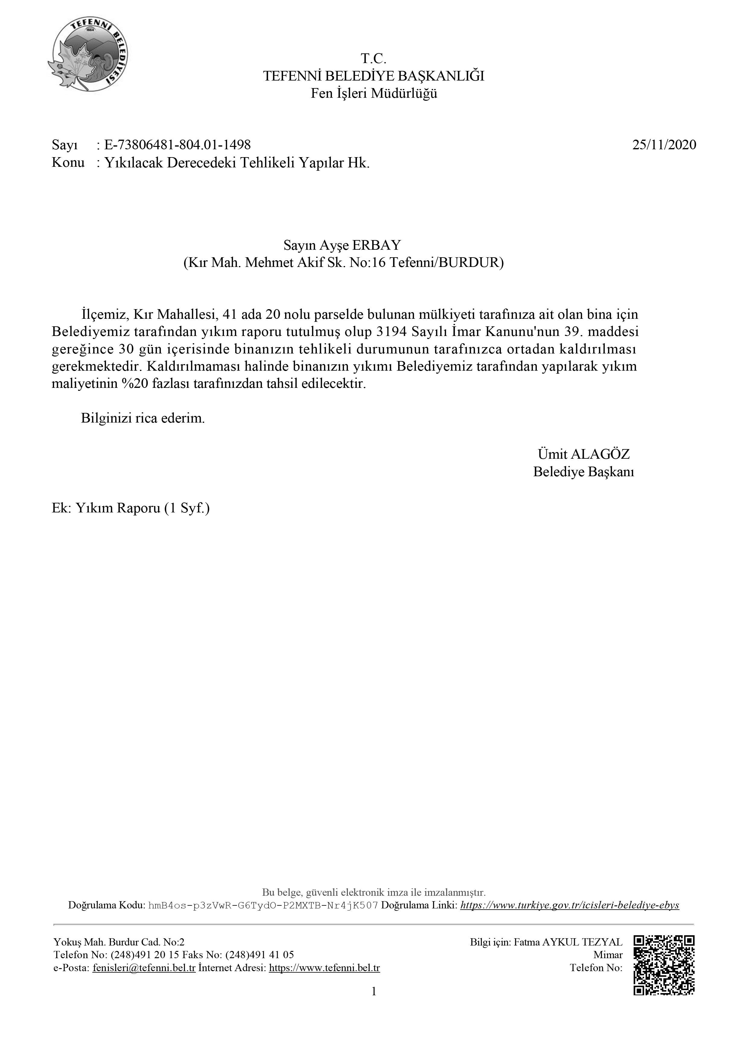 Yıkılacak Derecedeki Tehlikeli Yapılar Hk.